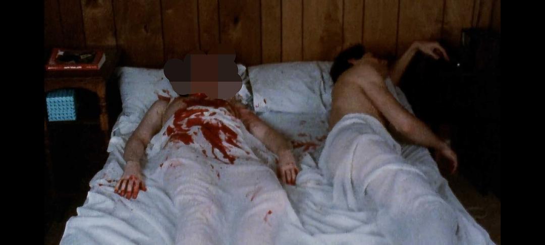 從噩夢中清醒過來的女主,決定跟富蘭克林試一試,她打電話給他,表示願意接受他的邀請,去跟他看個電影啥的,這個時候富蘭克林,正躺在床上,旁邊還躺着一個女的(啊,不,準确的說,應該是一具血肉模糊的女屍),大概就是下圖這模樣: